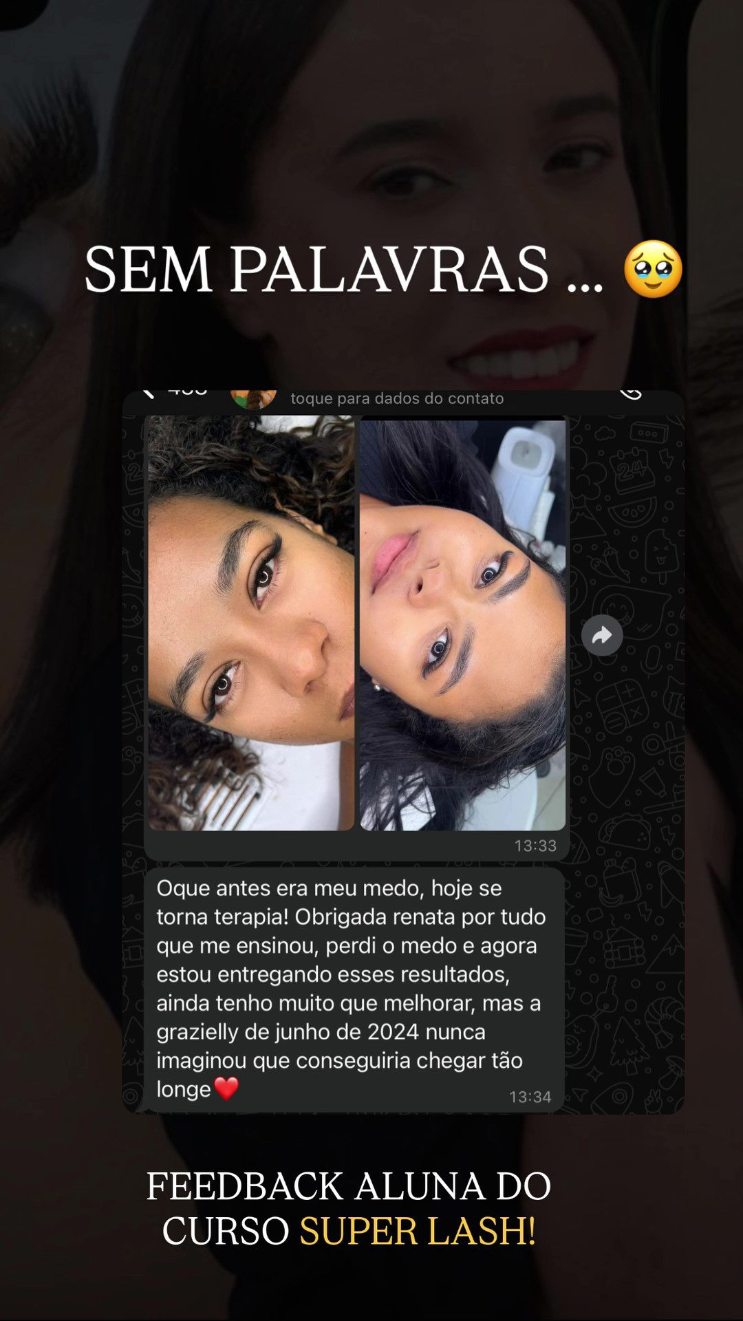 “Renata Lisboa — Empresária da beleza, palestrante e referência em extensão de cílios. Com 5 premiações nacionais e dezenas de alunas transformadas, Renata criou um método prático que já mudou a vida de muitas mulheres — e pode mudar a sua também.”